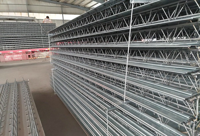 5、钢筋桁架要平行在钢筋头部,底模和钢筋的搭接不可低于30毫米,顺着长度朝向把镀锌钢板和钢梁点焊接,保证间距是300毫米即可。